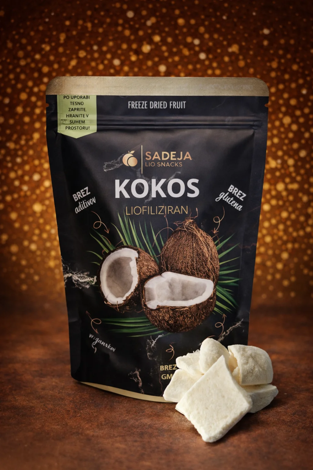 Liofiliziran kokos ohrani svojo naravno aromo, maščobe in hranila, hkrati pa postane lahek, rahlo hrustljav prigrizek, ki se kar stopi v ustih.